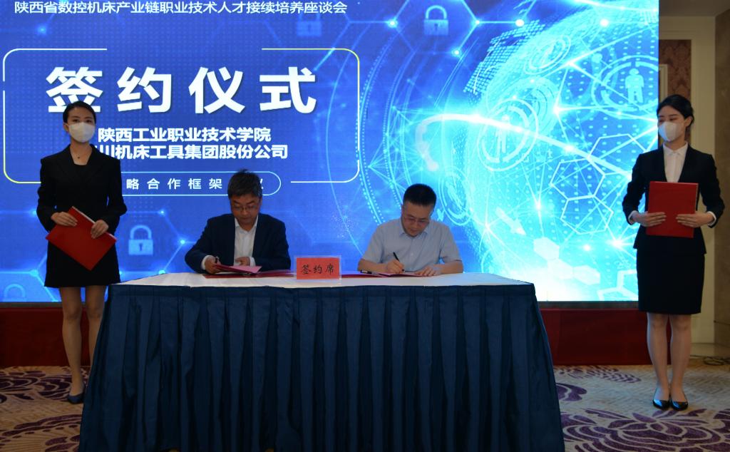 本次座谈过程中,我院西部产教融合研究院王建军院长代表学校与秦川机床现场签订了合作框架协议协议。协议约定双方本着“优势互补,资源共享,合作共赢,共同发展”的原则,在智能制造、工业机器人、高档数控机床及数控技术等领域展开深入合作。