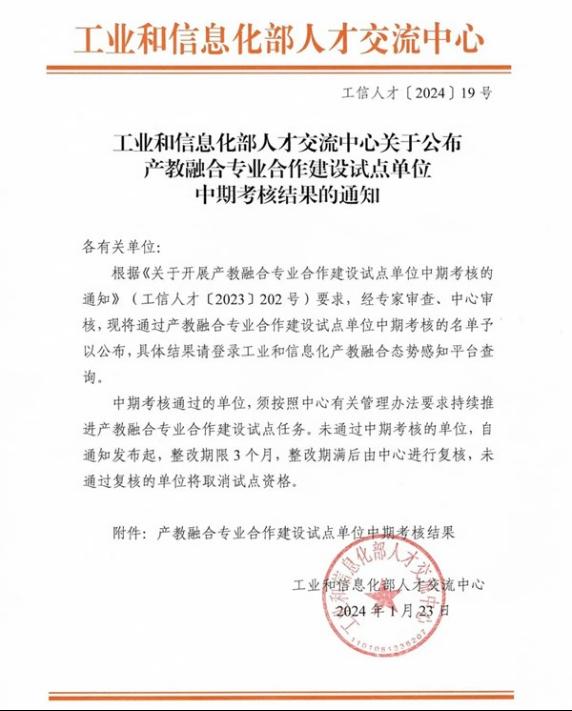 近日,工业和信息化部发布了《工业和信息化部人才交流中心关于公布产教融合专业合作建设试点单位中期考核结果的通知》,我校机械制造及自动化专业顺利通过了中期考核。